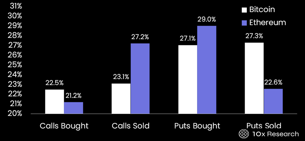 Options flow initially dominated by put buying (notional, 1 week flows)