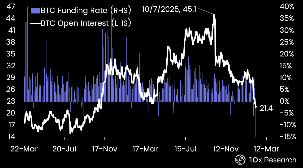 While sentiment and technical indicators are approaching extreme levels, the broader downtrend remains intact. In the absence of a clear catalyst, there is little urgency to step in. Positioning dynamics suggest traders remain focused on deleveraging and position unwinds rather than on preparing for a typical snapback rally.”