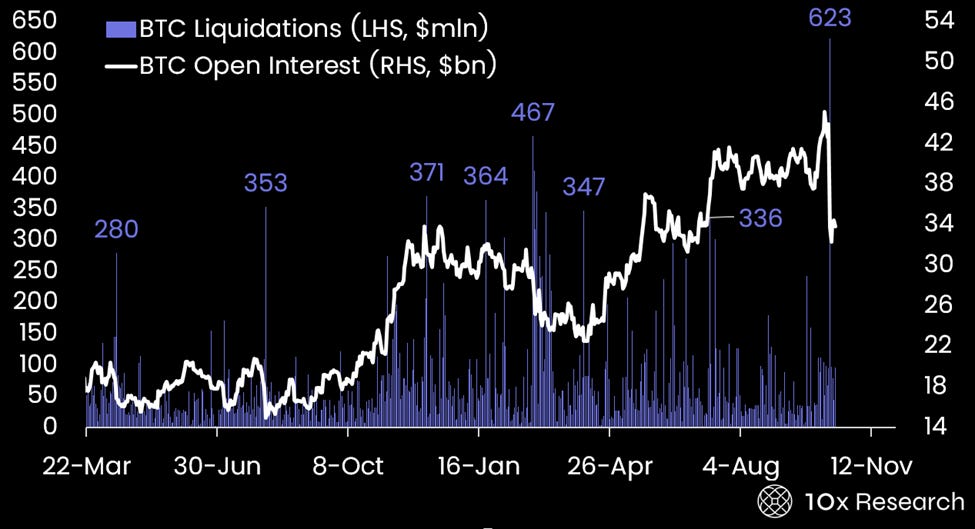 “Reported” BTC Liquidations (LHS) vs. BTC Futures Open Interest (RHS)