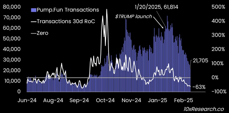 👇1-11) In our February 10, 2025 report, “Has $TRUMP Killed the Crypto Pump?” we analyzed how the crypto market dynamics shifted following the launch of the Trump Coin and its potential implications. We highlighted, "The market will likely remain in consolidation, with continued downside pressure in the near term.” “The launch of $TRUMP appears to have directly coincided with the peaks of Pump(dot)fun and Solana, marking a turning point in speculative momentum.” “A prime buying opportunity for Bitcoin could emerge within the next few weeks.”
