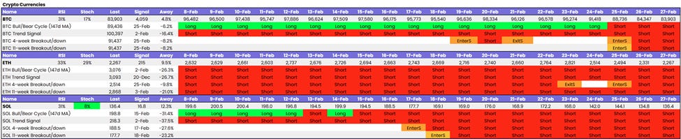 Our Trend and Breakout/down model turned bearish BTC, ETH, and SOL.