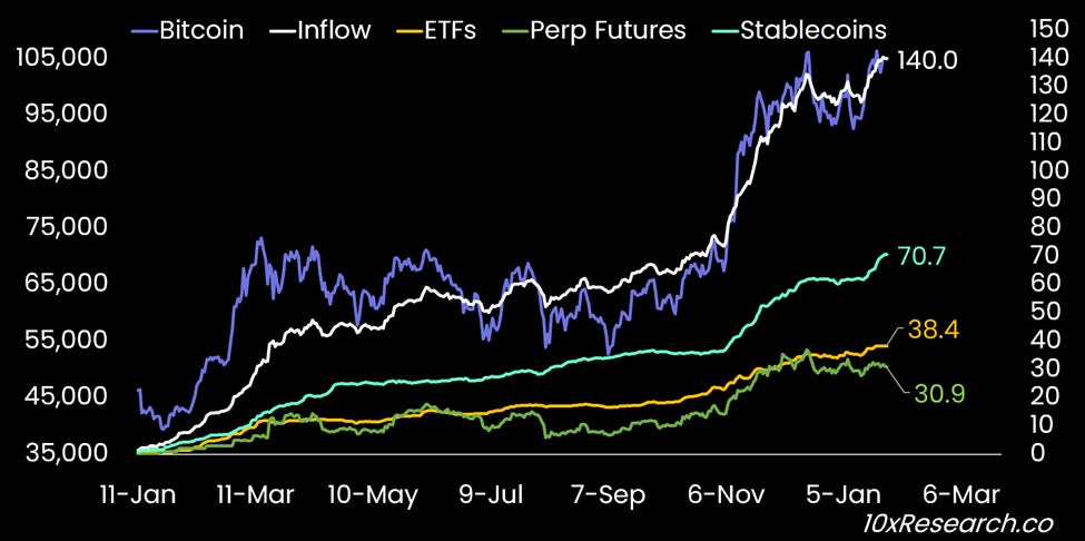 👇2-14) For instance, our aggregate money inflow indicator showed sharp increases in February and November last year. These periods coincided with significant Bitcoin rallies, making them ideal times to take bigger (leveraged) positions. Understanding these dynamics can be the key to maximizing returns.