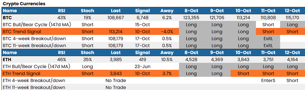 Our Trading Signals dashboard - trend signal turned bearish on October 11