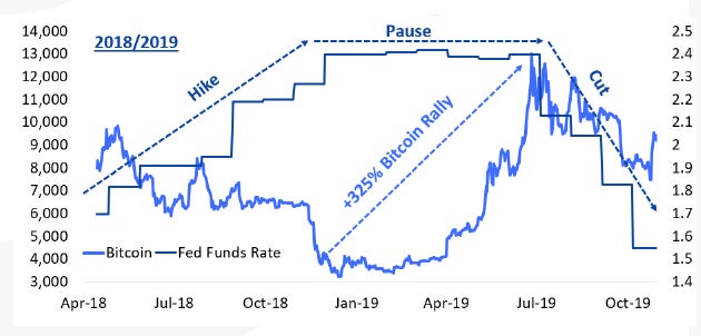 Bitcoin when the Fed ‘paused’ in early 2019 - The Fed has paused since July 2023