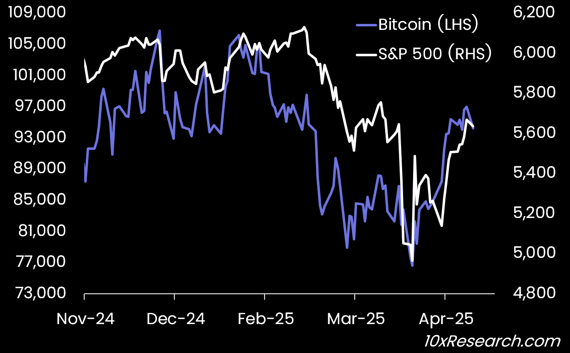 Bitcoin (LHS) vs. S&P 500 (RHS) could decouple…