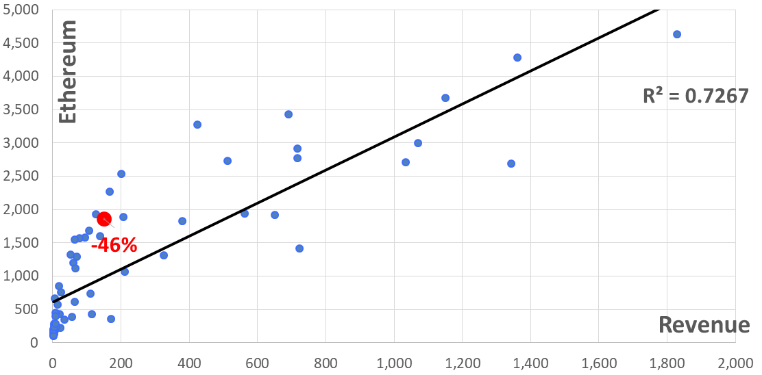 ... and based on Ethereum’s latest revenue numbers, the Ether price appears vastly overvalued.