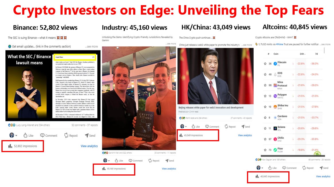 There are 3 main concerns for investors right now: 1) What will happen to Binance (53k views), 2) Can HK (& China) step into the crypto void (43k views), & 3) Will the SEC classification of Altcoins as securities cause their demise? (41k views) & 4) investors are reading about crypto history to understand it all (45k views).