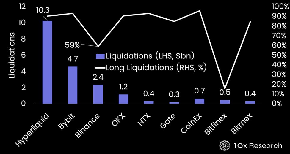 For hedge funds and market makers holding long-short positions across exchanges, this can unexpectedly break hedges and create sudden directional exposure, turning “neutral” books into loss-making ones. That’s why we argued this crash was unlikely to produce a V-shaped rebound and would instead lead to further deleveraging, particularly in altcoins.