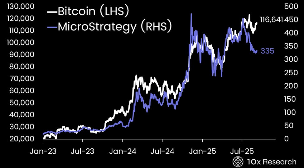 At the same time, the Digital Asset Treasury (DAT) theme has matured to a point where many companies are now trading close to their net asset value, making capital raising increasingly complex. Smaller players, in particular, lack the scale to access the full range of financial products, including traditional debt markets. The key question is whether these treasury companies can ever command a meaningful NAV premium again—and whether this marks the end of the theme. We believe this could be a critical inflection point, and we have several strategies in mind for trading it as we explain below.