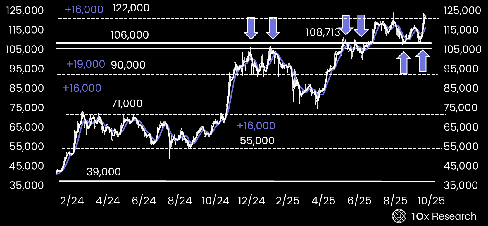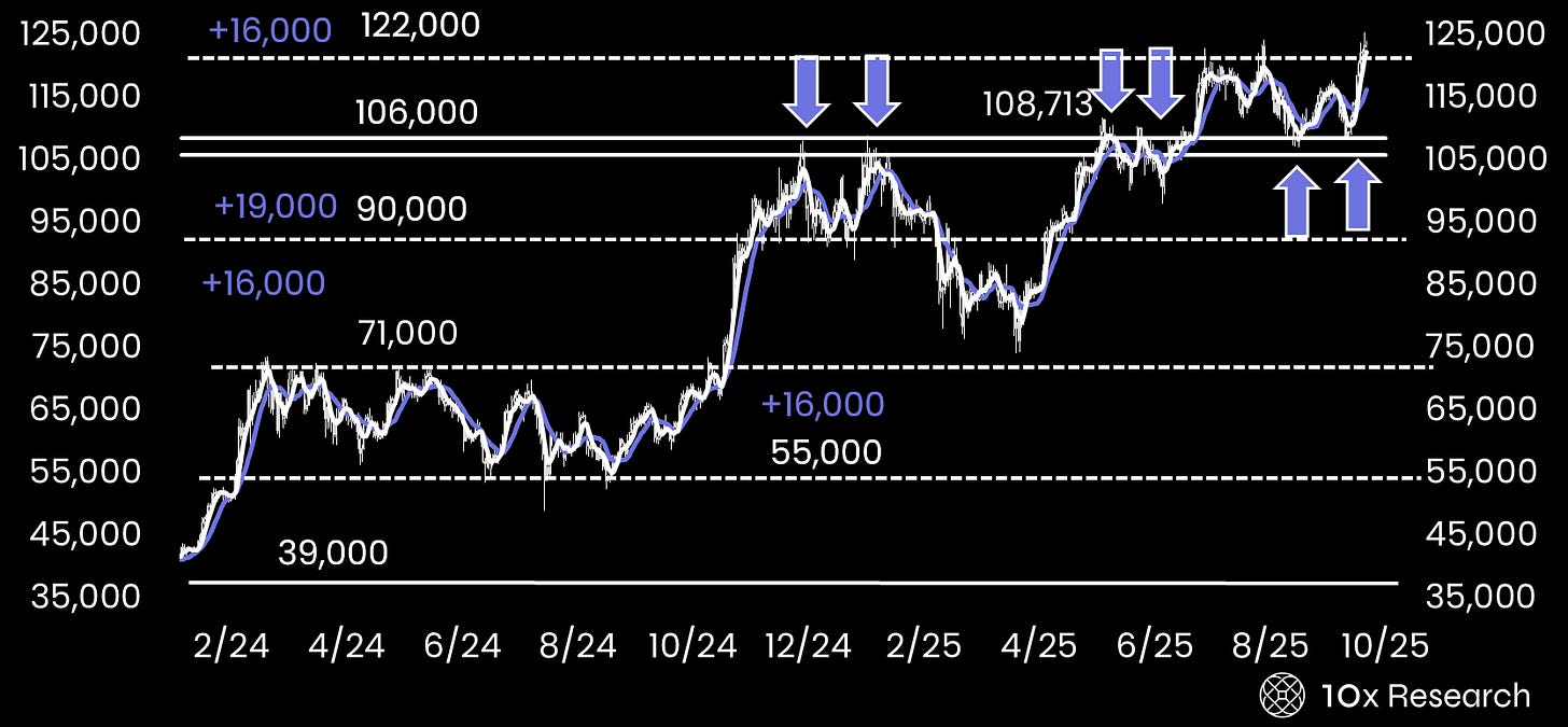 Bitcoin reached a new all-time high during low-liquidity Sunday trading hours—not driven by news or a short squeeze, but by genuine demand. This alone suggests that the path of least resistance remains higher, not lower. While many traders were positioned for a breakout—evident from the rise in futures open interest, record ETF inflows (the second-largest weekly total ever), and heavy call option buying—others have been caught underexposed or missed the move entirely.