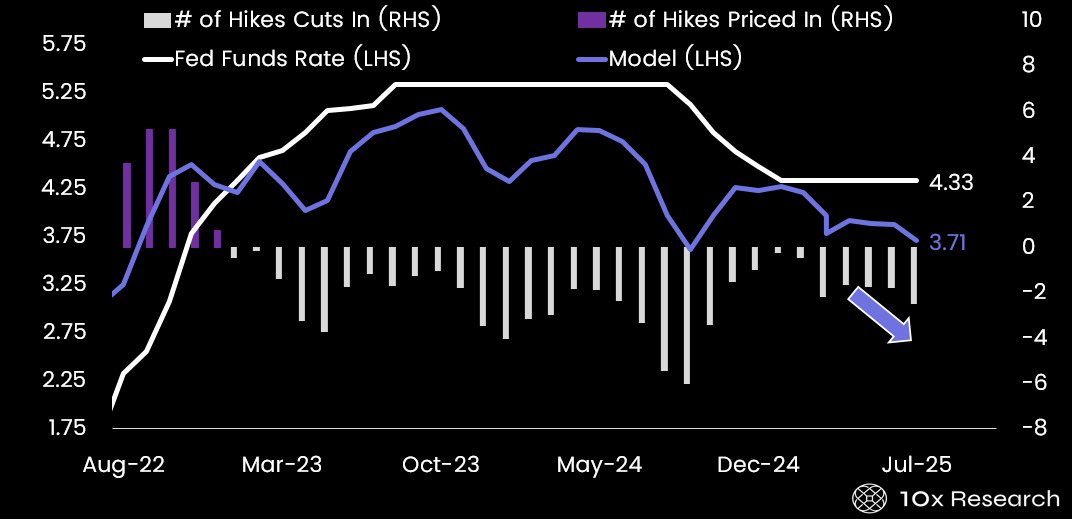 U.S. Fed Funds (LHS) vs. # of Rate Cuts price in (RHS) - just a matter of time