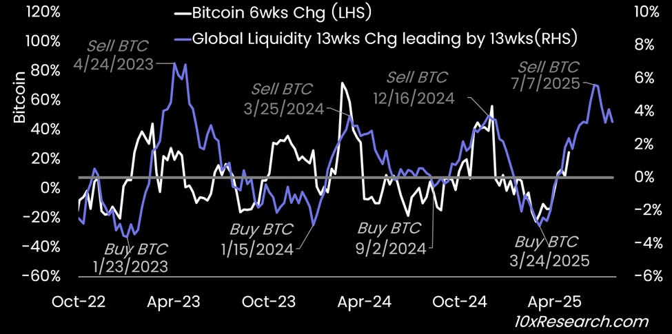Bitcoin follows Global Liquidity with a 13-weeks lag, peak July