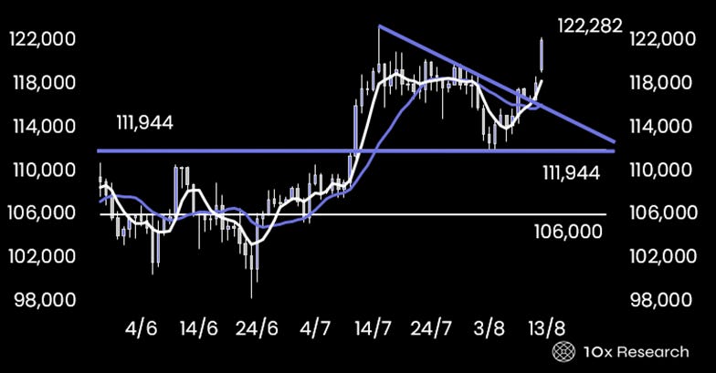 Something big just shifted in Bitcoin’s backdrop—and it’s not what most traders are watching. A wave of macro forces is colliding with market positioning to create an unusual setup. Asian buying is surging, technical patterns are breaking, and key levels are coming into play. Meanwhile, policy moves out of Washington are adding a new twist that could reshape the trend. The breakout we highlighted in Sunday’s research, and in our subscriber-only Telegram group over the weekend, is now unfolding.